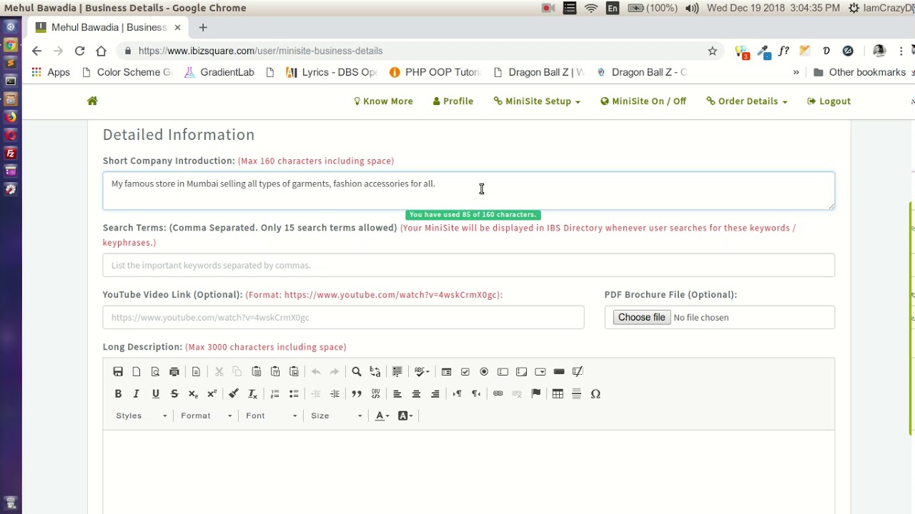7. DETAILED INFO – SETTING PRODUCTS MINISITE ON IBIZSQUARE – [HINDI]