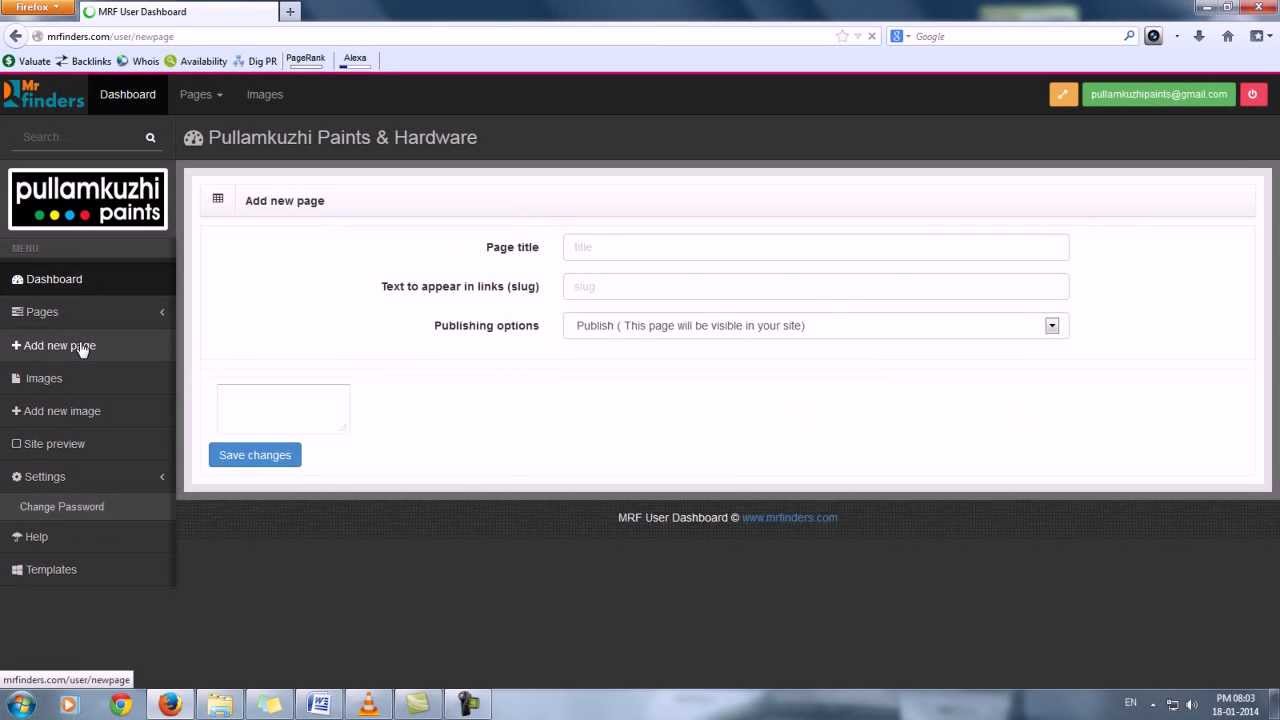 HOW TO CREATE A PAGE IN MRFINDERS MINISITE